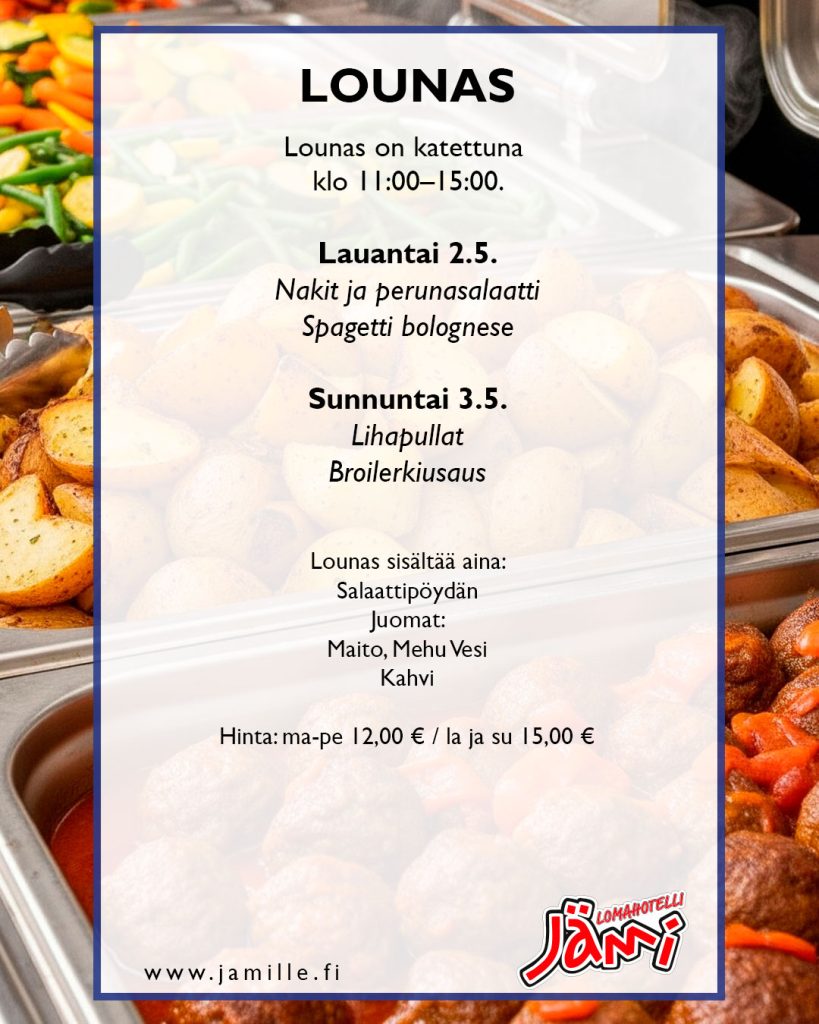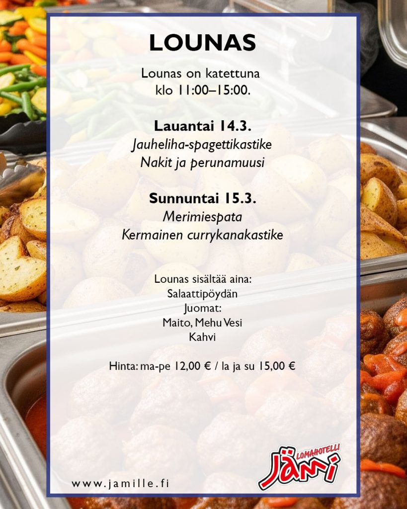 Lomahotelli Jämin Ravintolassa nautit rennosta ruokailusta ja monipuolisesta menusta.